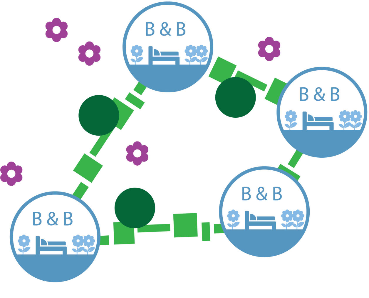 Verbindungen zwischen Bed & Breakfast-Gebieten, welche den Austausch zwischen Wildbestäubern erleichtern.